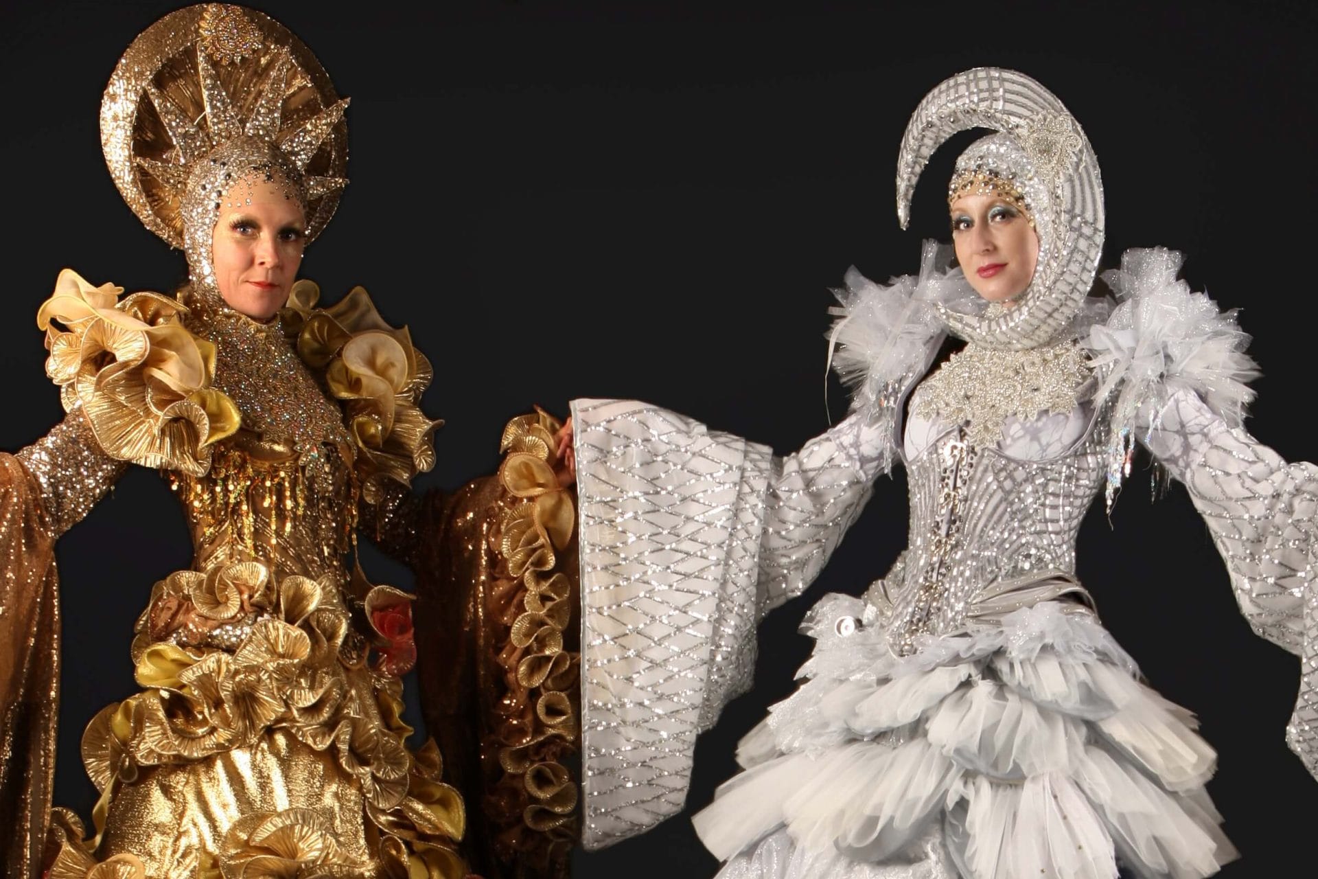 With their dazzling costumes and towering presence, they’ll roam your space as an ambient act, elevating the atmosphere and adding that extra sparkle and height for an unforgettable experience.