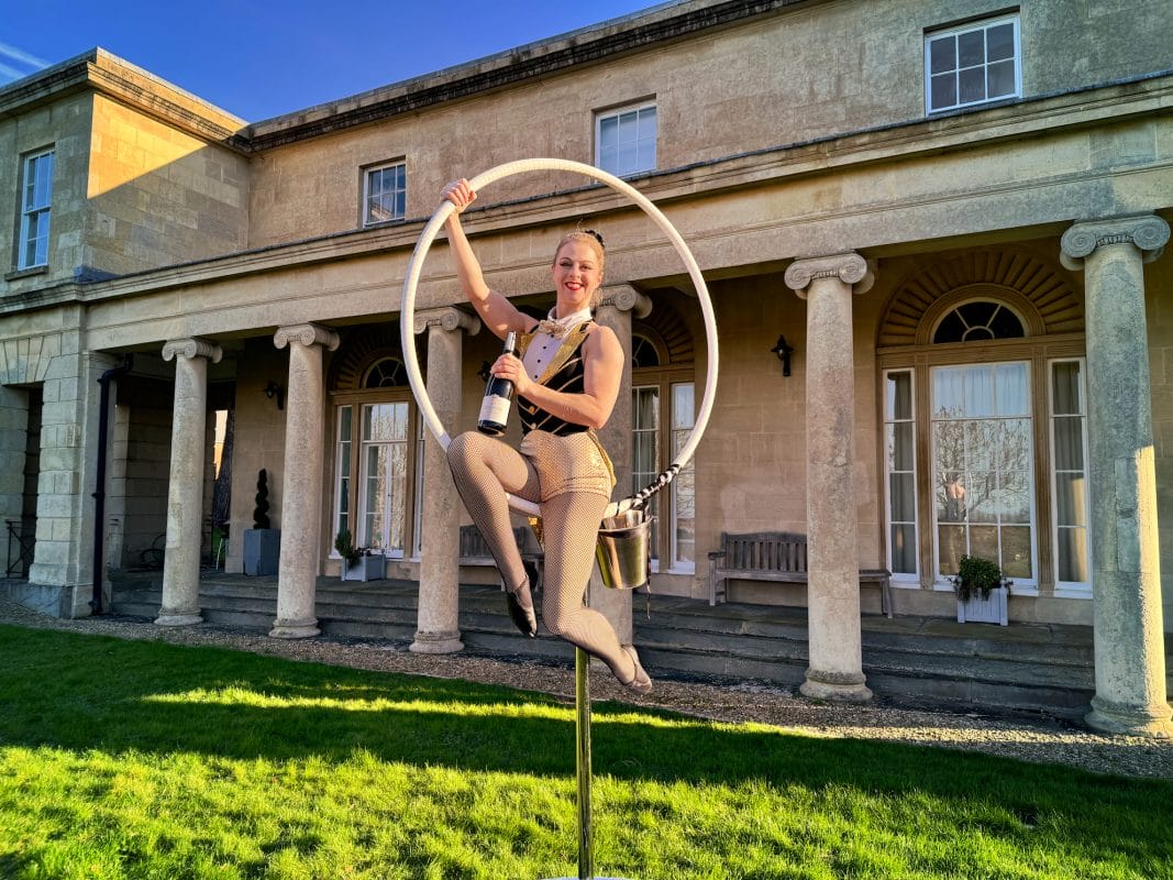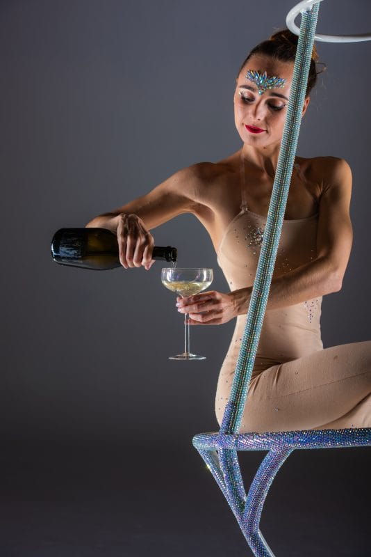 Our performers will gracefully glide through your venue on a cutting-edge rig on wheels, pouring champagne with poise and flair.