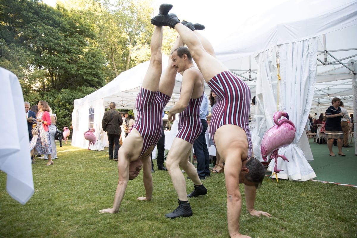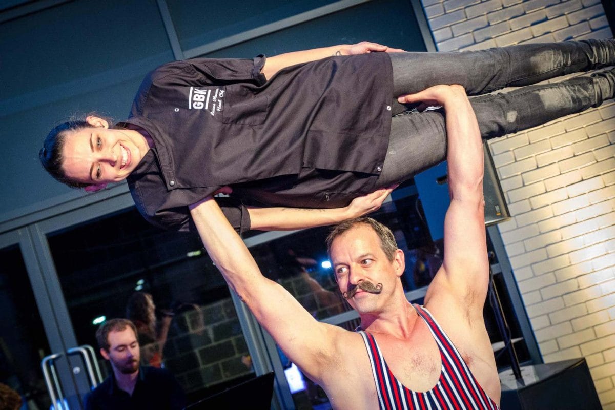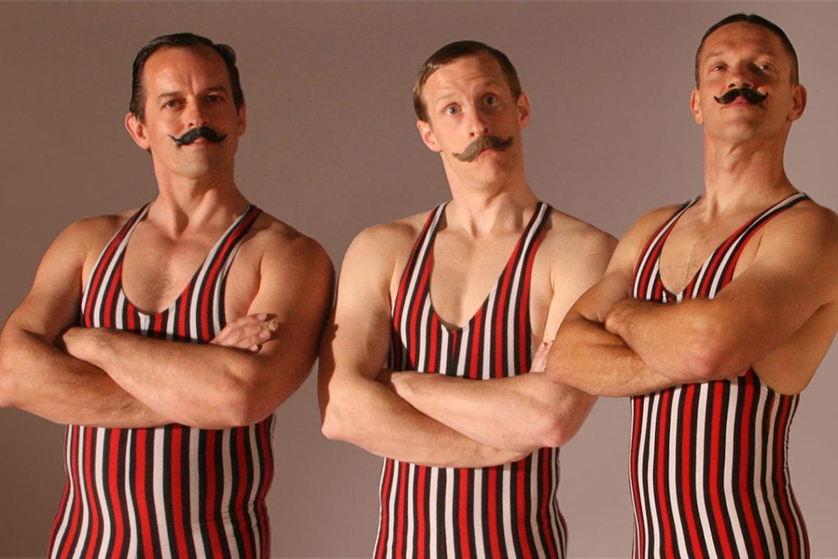 The Acro Chaps are a walkabout act that combines acrobatic tricks, comedy, and a whole lot of moustache!