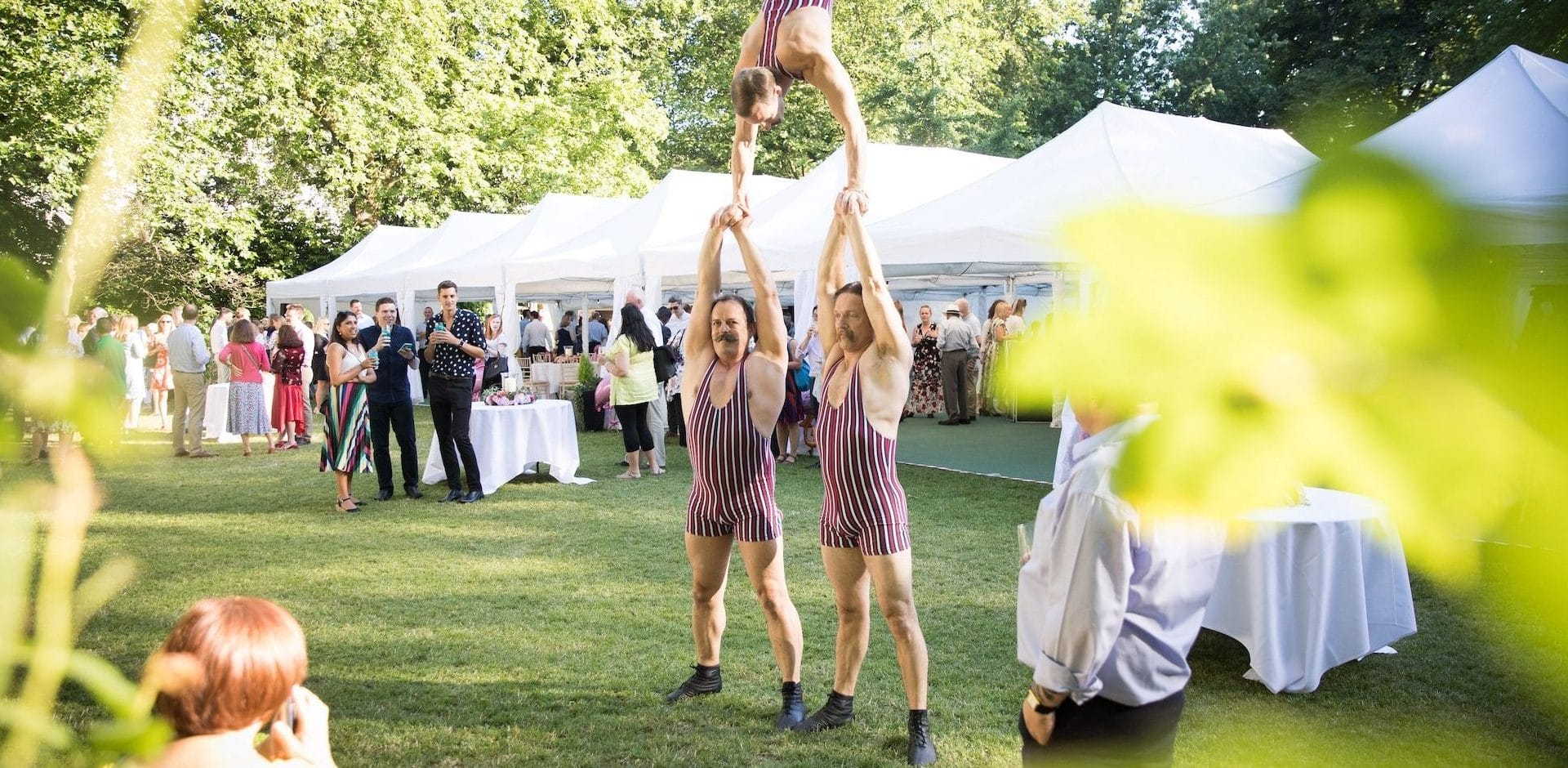 They’ll wow your guests with feats of strength and acrobatic tricks, either mingling amongst the crowd or as part of a captivating stage show that guarantees everyone gets to see the fun.