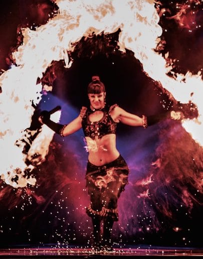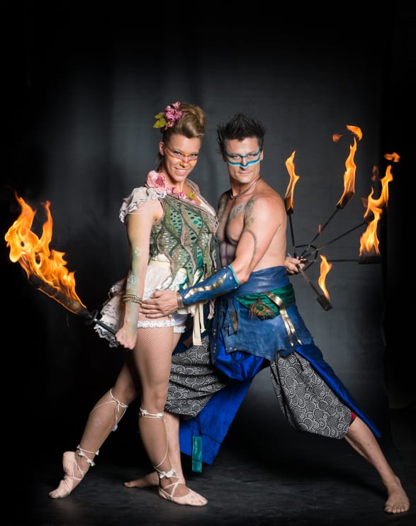 Combining martial arts, dance, special effects, and expert fire prop manipulation, they captivate guests with their playful acrobatics, handstands, faerie wands, and fire tricks.