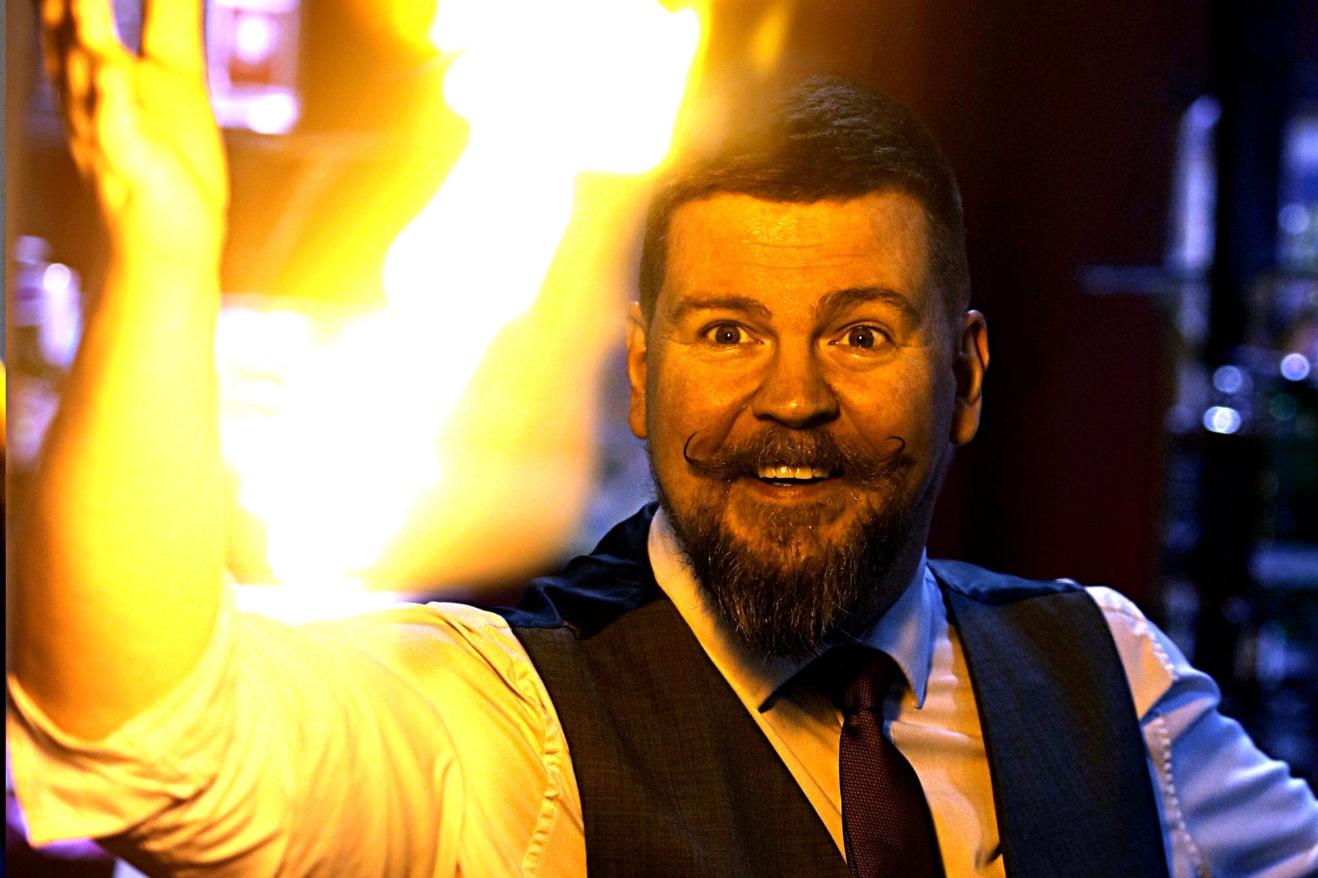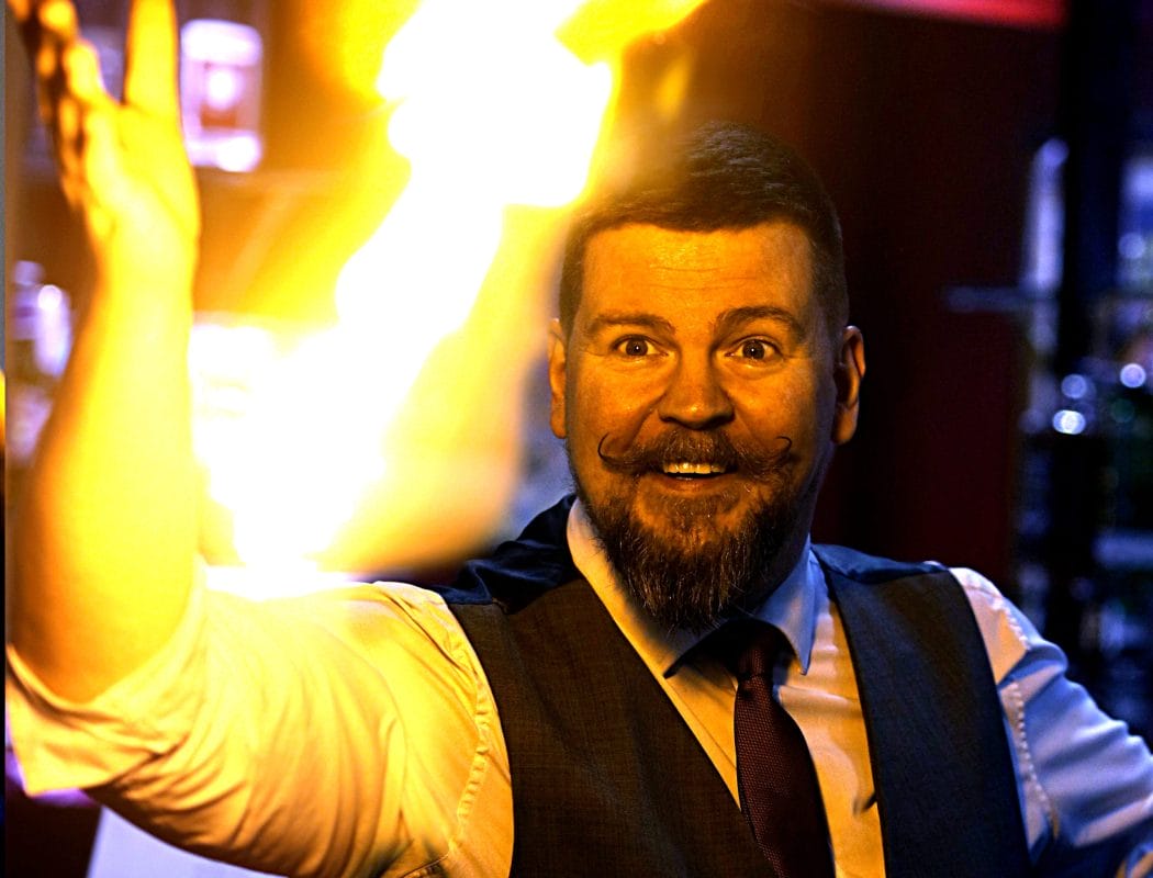 Impeccably dressed in a three-piece suit and waxed moustache, his classic yet modern style will leave your guests astonished, creating unforgettable moments at corporate events and private parties.