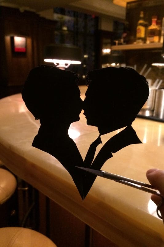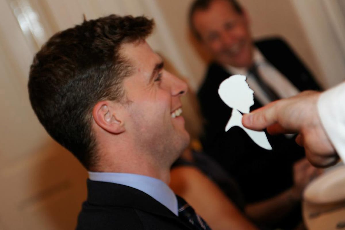 Mark is a master of traditional silhouette portraiture, capturing striking likenesses with nothing more than scissors and black paper.
