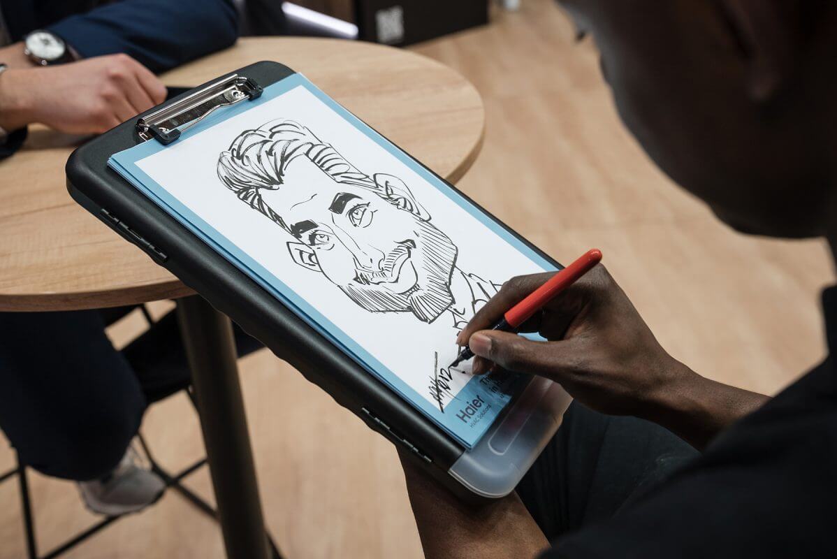 Based on photographs, these detailed caricatures are created before the event and presented upon arrival in either black and white or colour – or in digital format.