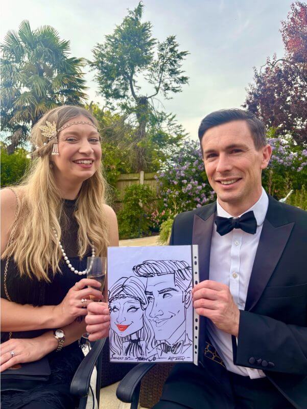 Each caricature comes with a white mounting border, allowing guests to sign their own – a fun and memorable alternative to a traditional guest book.