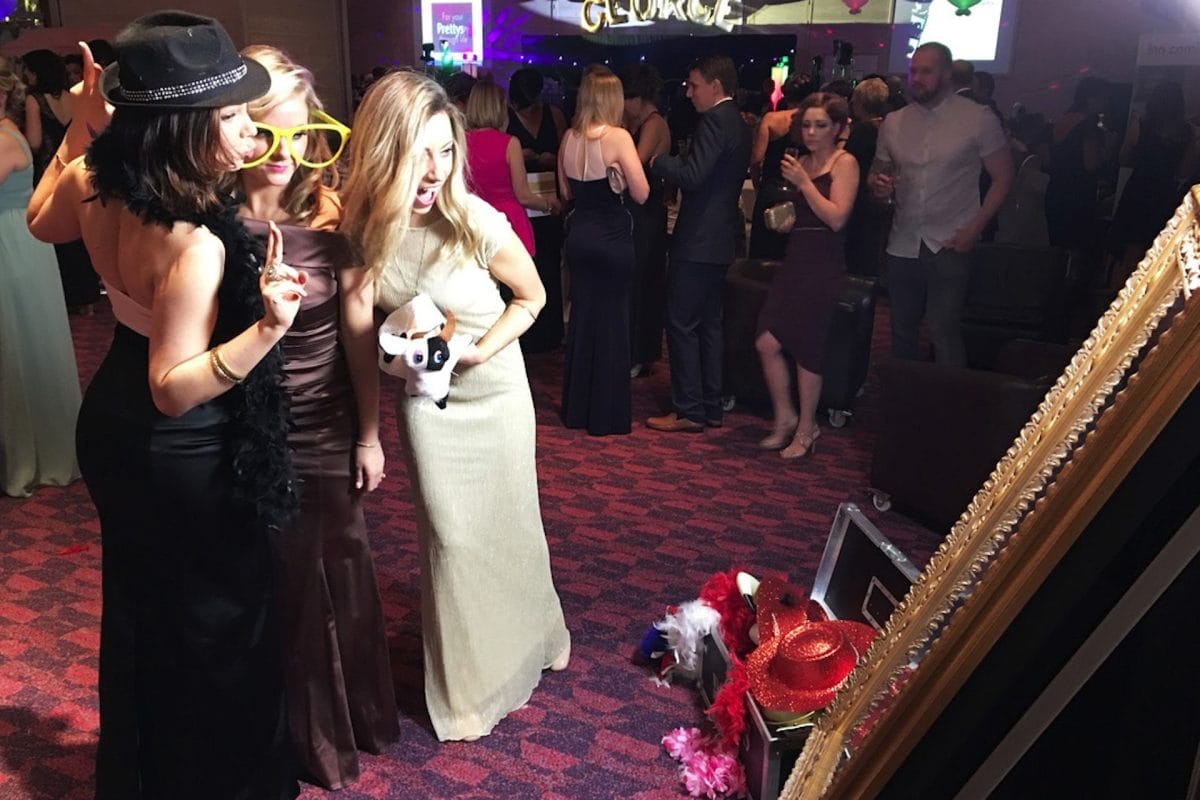 The Mirror Booth package includes unlimited prints, a prop box, an attendant, and digital copies of the images after the event.