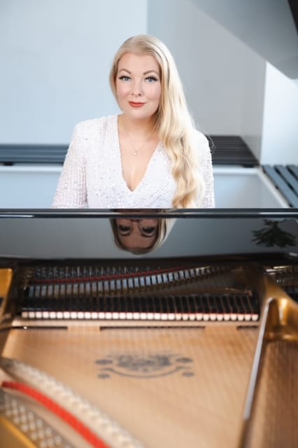 Currently performing regularly at Harrods, she has also captivated audiences at prestigious venues like The Dorchester and The Savoy, while also serenading celebrities and dignitaries.