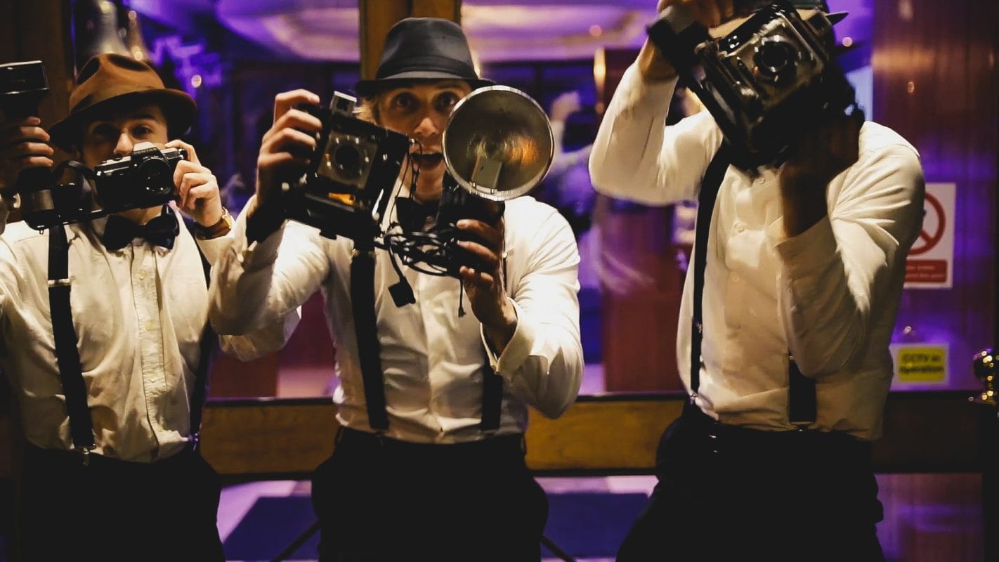 Creating a red carpet feeling, they’ll shoot away as guests arrive and carry on throughout the drinks reception, entertaining guests in character whilst capturing the evening!