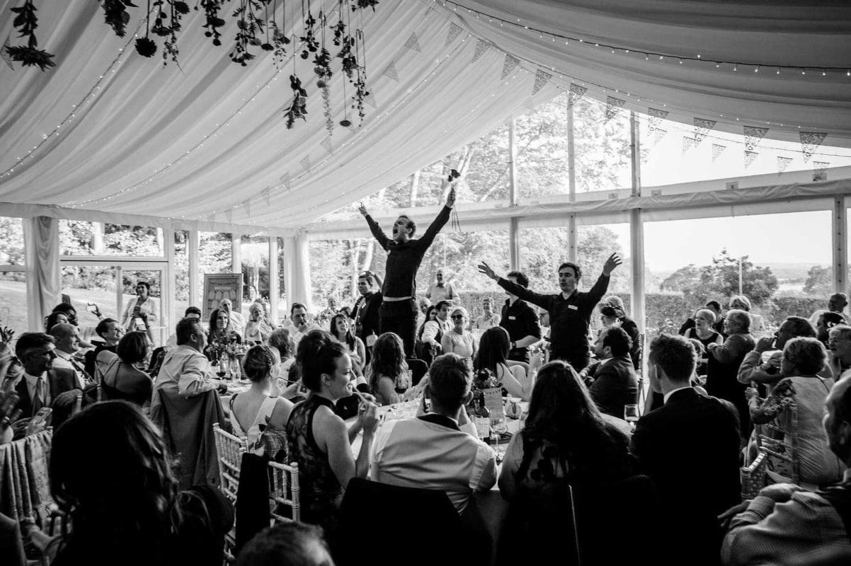 A mix of classically trained and west-end performers, they will pose as real staff working alongside the catering team and serving you and your guests throughout the night.
