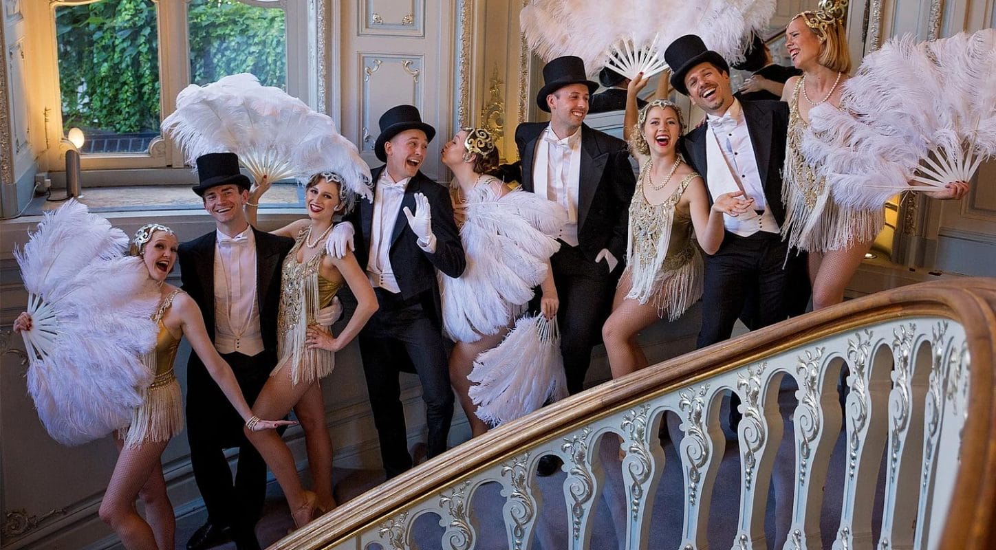 From teaching the Charleston to stunning dance numbers, they’ll wow your guests in a range of elegant costumes that fit any occasion.