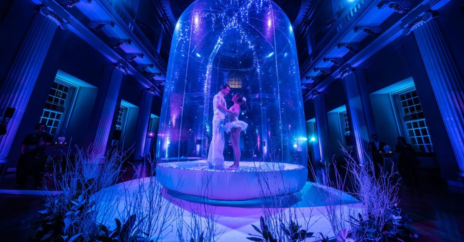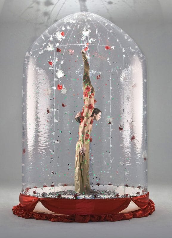 Set inside the largest snowglobe you’re likely to have ever seen, two extraordinary acrobats will dazzle your audience with a breathtaking, balancing duet.