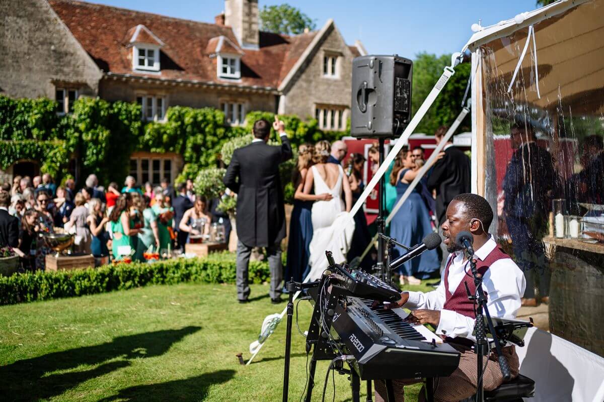 From start to finish, the performances James provided were outstanding. We arrived at the field where we held our wedding party to James singing and playing the piano, he learnt our first dance song in less than 2 weeks, and provided a DJ service in the evening. Jodie T - Wedding Client