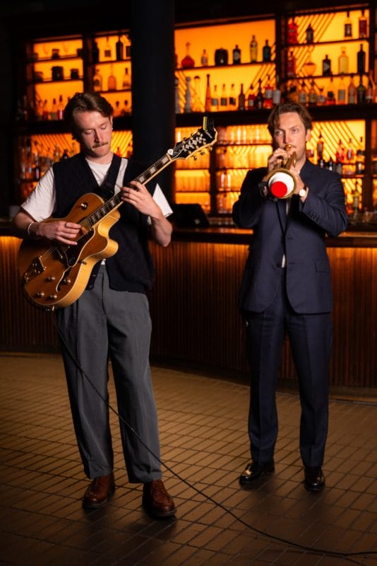 For smaller or more intimate settings, Jack and Charlie often perform as a duo, blending trumpet and guitar to provide a relaxed, ambient atmosphere.