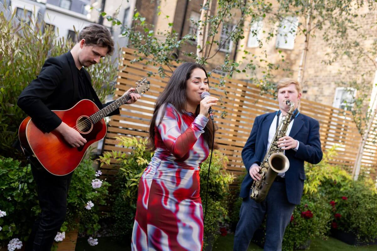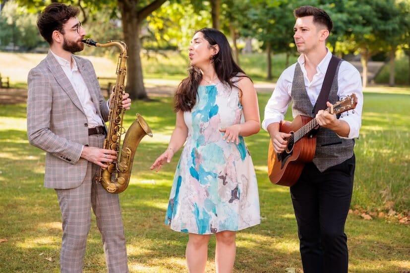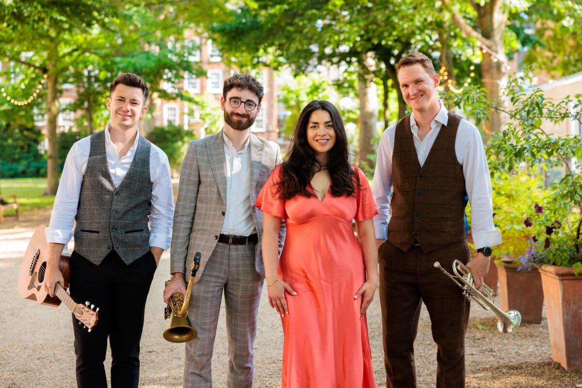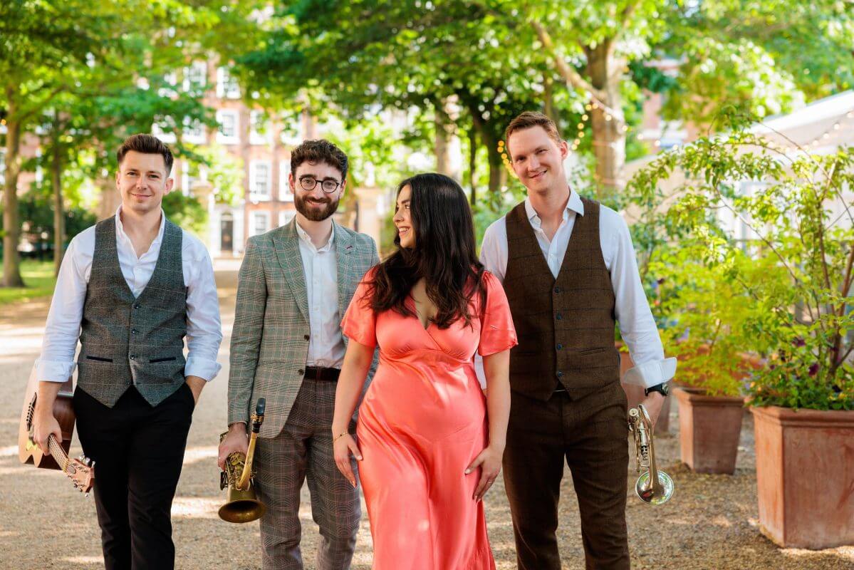 Their compact, wireless setup makes them ideal for unconventional event spaces – from rooftop terraces and stately homes to ballrooms, marquees, and private gardens. They can perform as a trio or expand to a larger line-up, depending on your event needs.