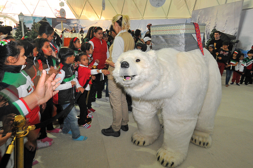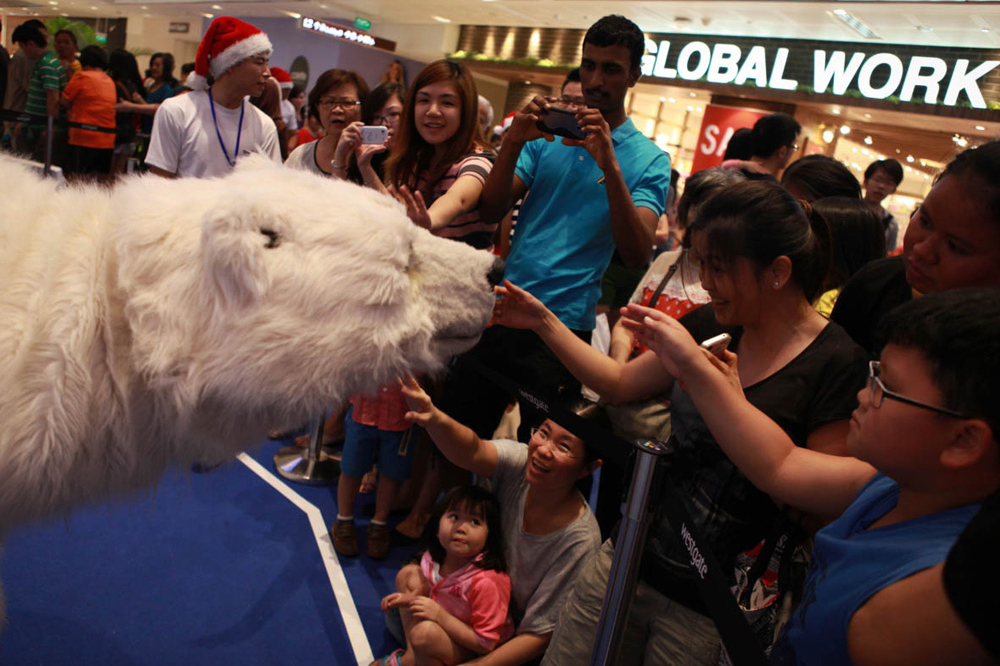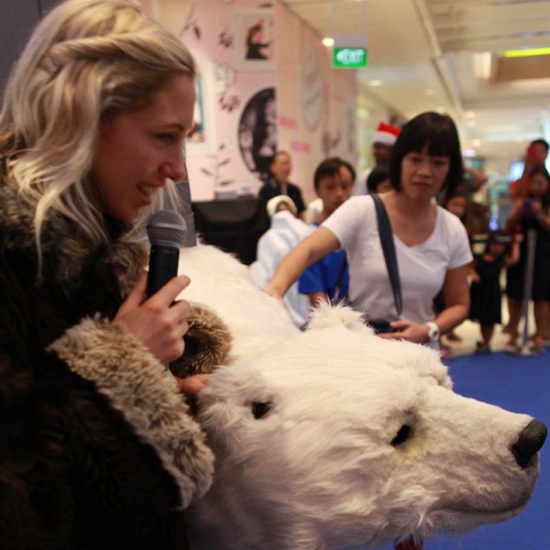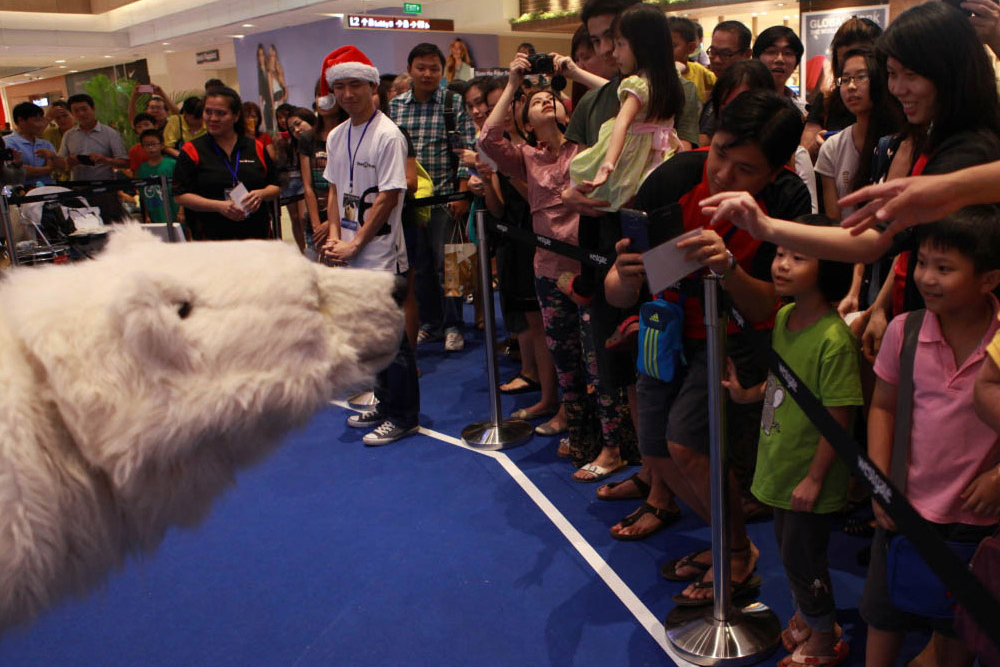 The polar bear is a huge hit with audiences worldwide. He has appeared at countless Christmas parties, environmental events, winter-themed events and film premieres.