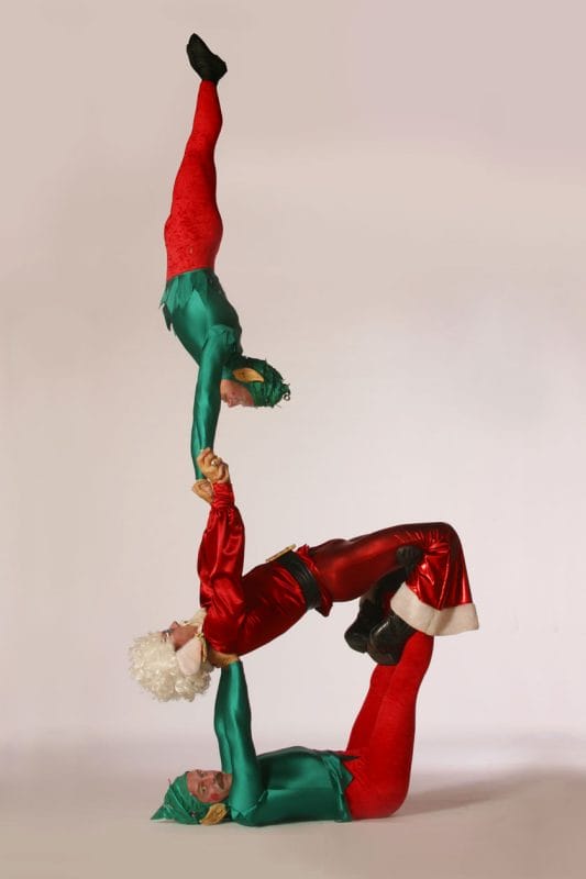 Experience the thrill of festive acrobatics with Santa and his elves in this incredible acrobatic performance.