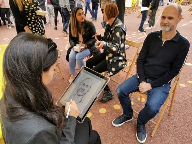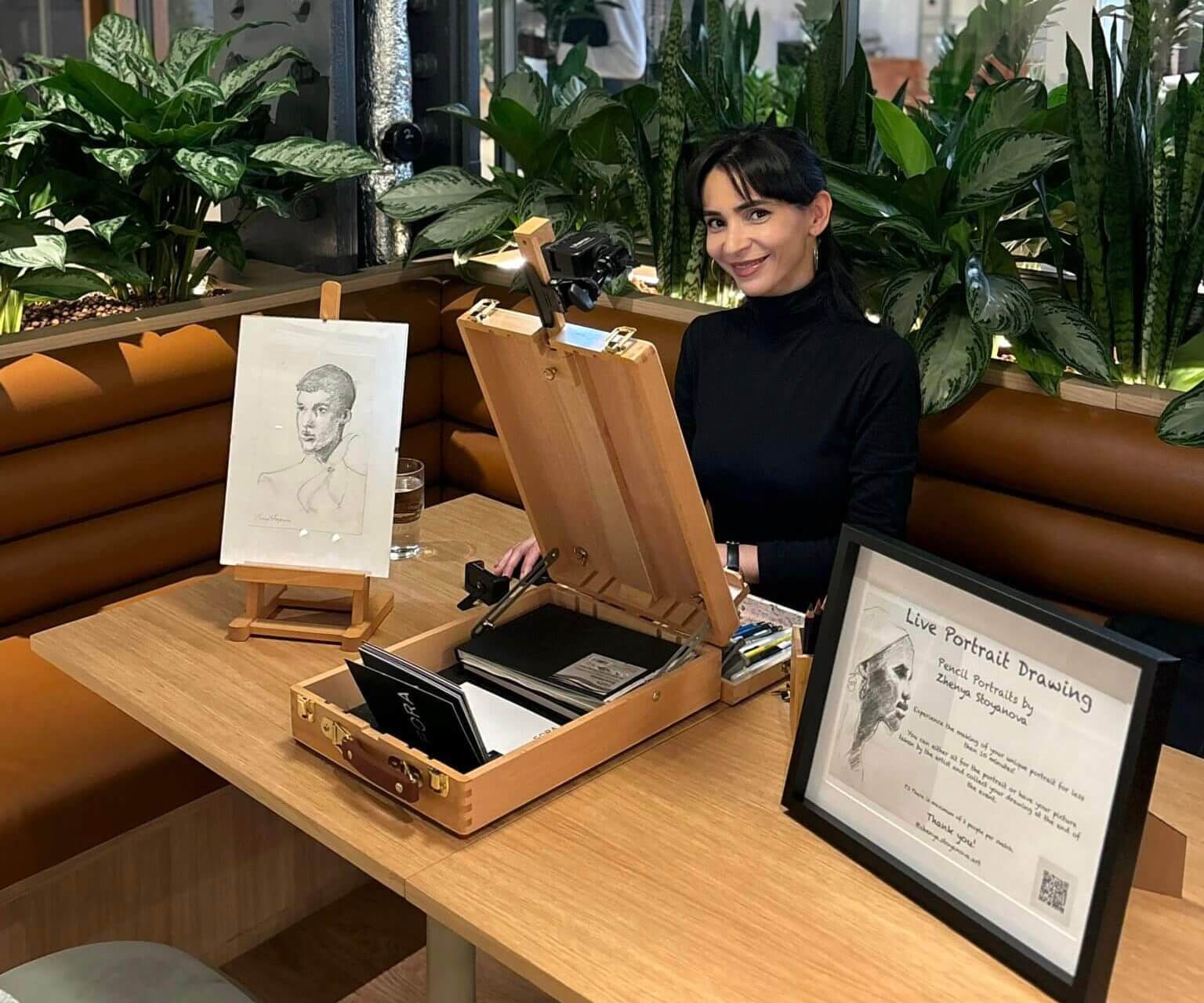 For larger events, portraits can be created from photographs taken at the start, with the finished artwork ready for collection by the end of the event. This dynamic and engaging experience has been highly sought after at prestigious venues in London and internationally, with notable clients such as Netflix UK, YouTube, Fora Space, and Chiswick Business Park.