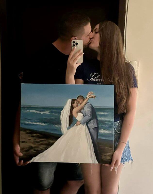 In addition to speed portraiture, Zhenya also offers bespoke wedding paintings, making her the perfect choice for clients seeking unique and personal event art.