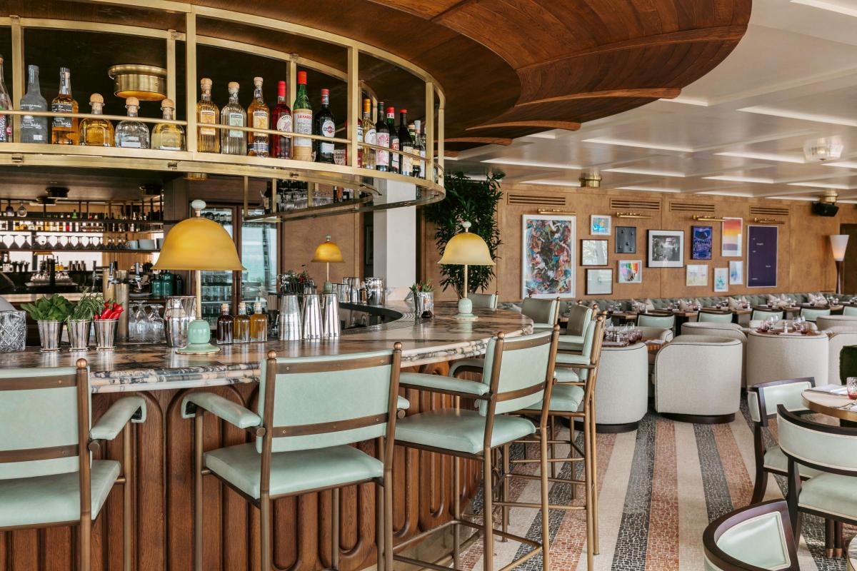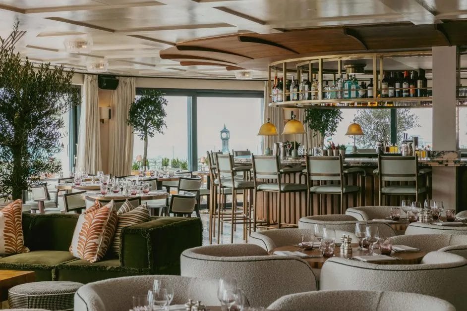 Overlooking the English Channel, the club has a glass front and a banana-shaped pool designed by artist David Shrigley.