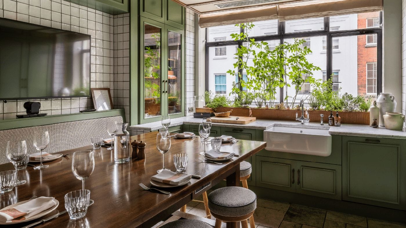 Set within their neighbourhood restaurant, Mortimer House Kitchen, The Conservatory takes inspiration from an idyllic Mediterranean garden with exposed brick walls and abundant foliage. Available for semi private dining and group bookings of up to 22 people, it’s suitable for everything from a working lunch to a celebratory moment under the starlit glass ceiling.