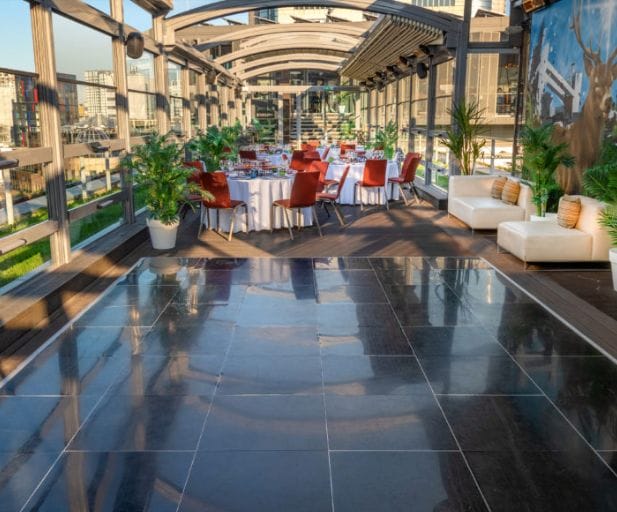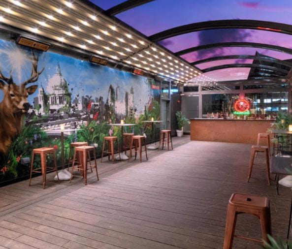 360-degree views of the London skyline including The Shard, Tower of London, The Gherkin and St. Paul’s Cathedral.