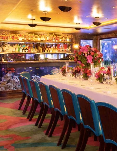 The Private Room at Scott’s pays homage to the restaurant’s status as Mayfair’s premier destination for seafood, with panels of gilded and painted glass mirrors depicting various sea creatures, in addition to a marble-topped fish tank bar. Bespoke menus are available, incorporating your favourite Scott’s dishes, with wine pairings, chosen for you by our Sommelier.