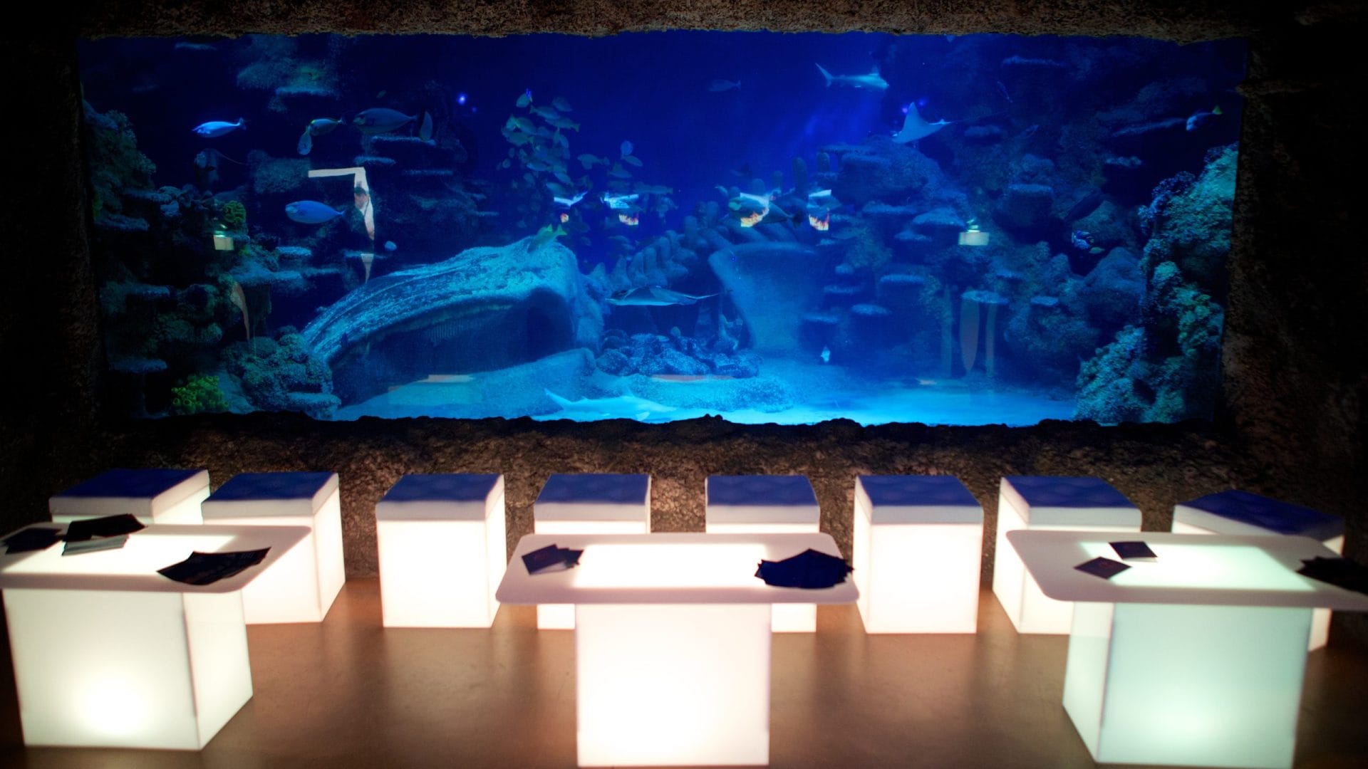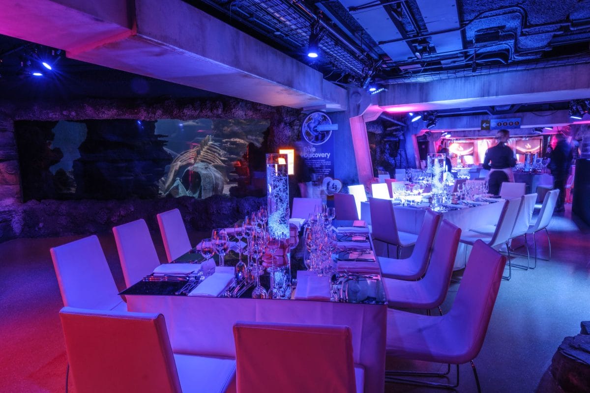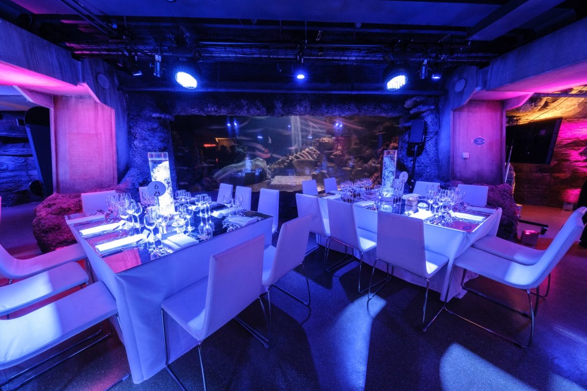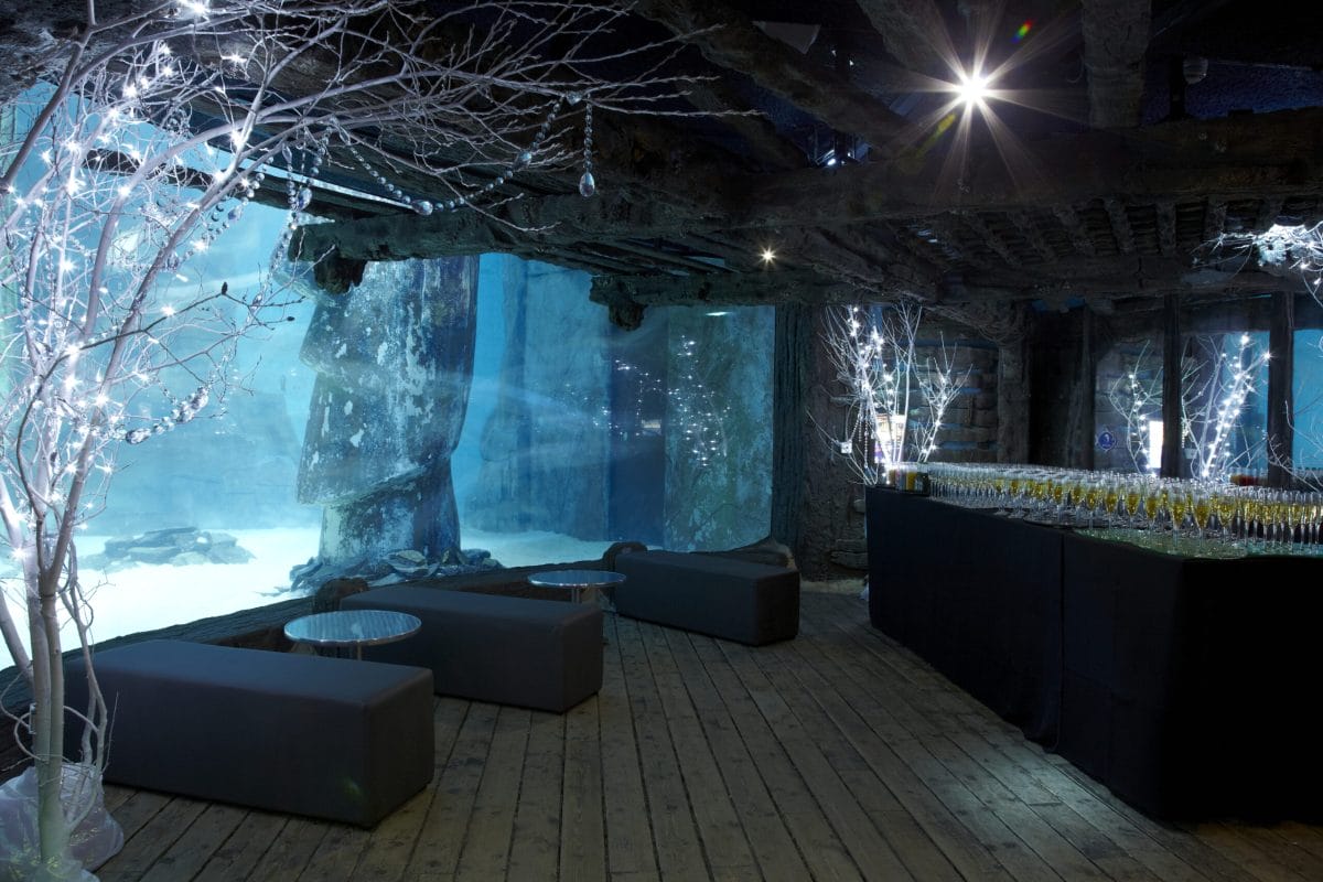 From the start of your event guests are plunged into an immersive experience under the sea with an amazing glass floor Shark Walk, offering incredible views into a magnificent shark tank below, where the arrival drinks will be waiting. After discovering the sharks, guests can then stroll under the incredible glass Ocean Tunnel admiring the shoals of fish and gliding turtles above their heads towards the main events space, Atlantic Cove. Here the night will unfold surrounded by floor-to-ceiling tanks filled with thousands of different creatures from the sea. It’s an ever-changing seascape creating a magical and immersive experience.